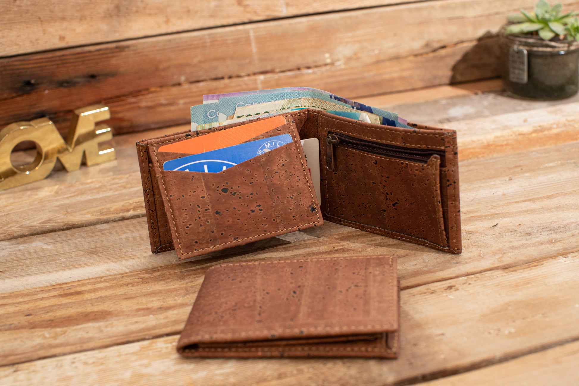 DESCRIPTION: 100% natural cork men's wallet, a very slim wallet with a compartment for a credit card, bills.