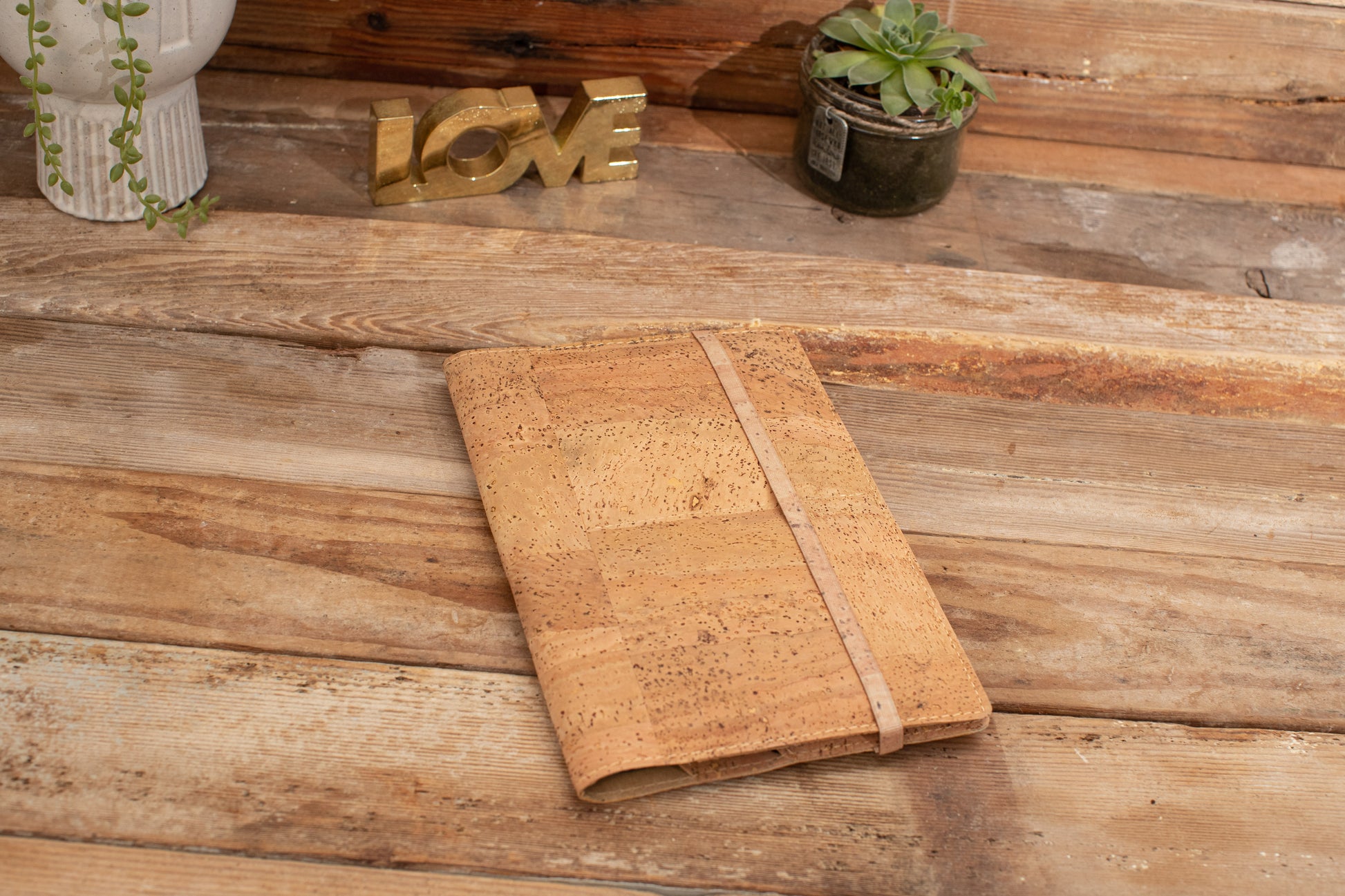 DESCRIPTION: 100% Natural cork fabric. Simple yet stylish tablet cover, with elastic closure in beige. lightweight.